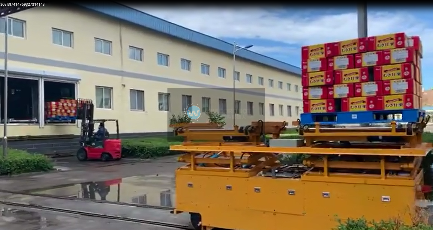 Hebei Shenli Group is a large chestnut manufacturer in China. Due to the long distance between the end of the production line and the warehouse and the height difference of 1.5 meters, it used to use forklifts to transport back and forth, requiring 3 forklifts, and it could not work normally on rainy days. In order to solve this pain point, Shenli Group uses the outdoor lifting RGV car of WECO Robot, which perfectly solves the above problems, saves 3 heavy forklifts and frees 3 workers to do other easier work.